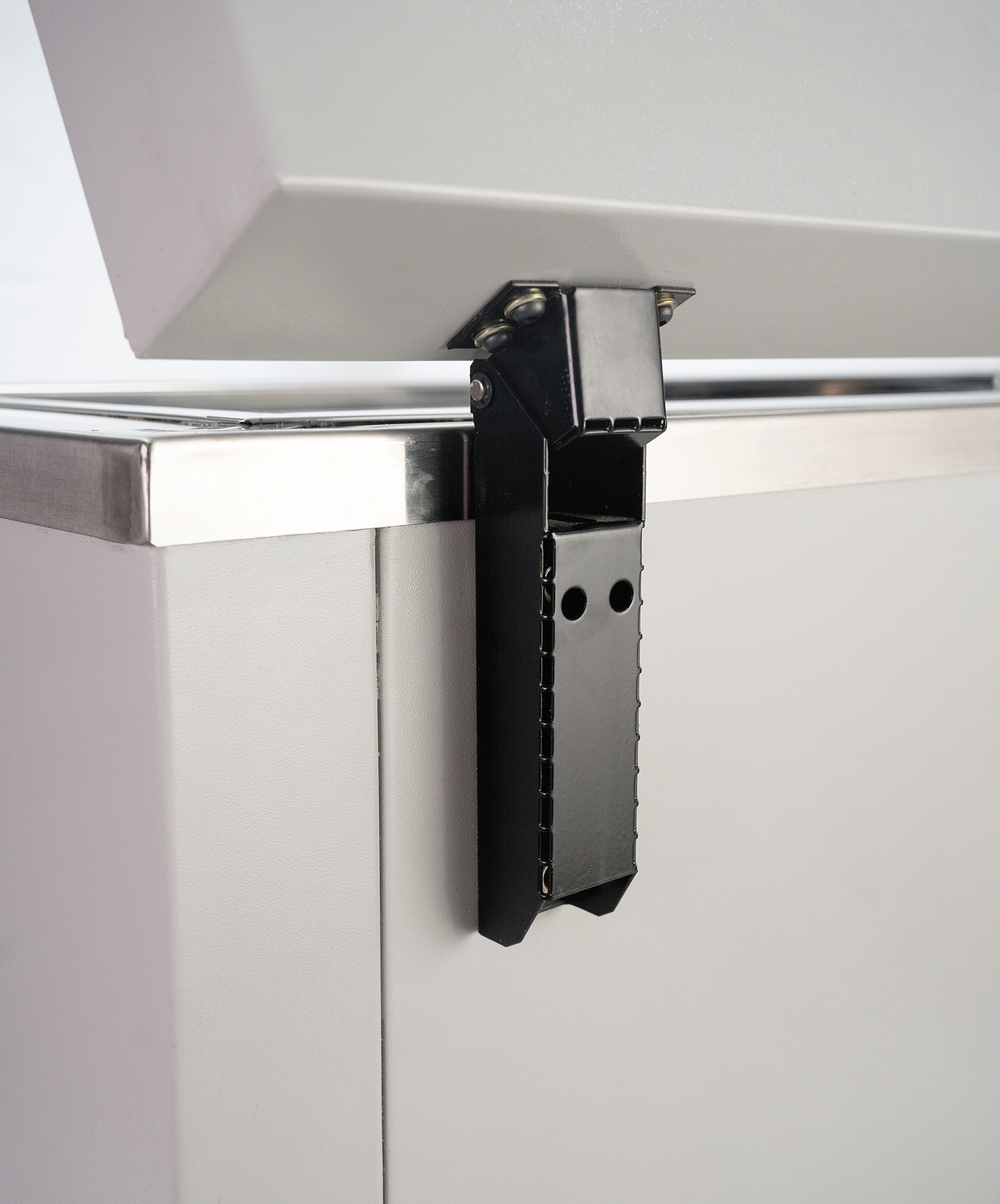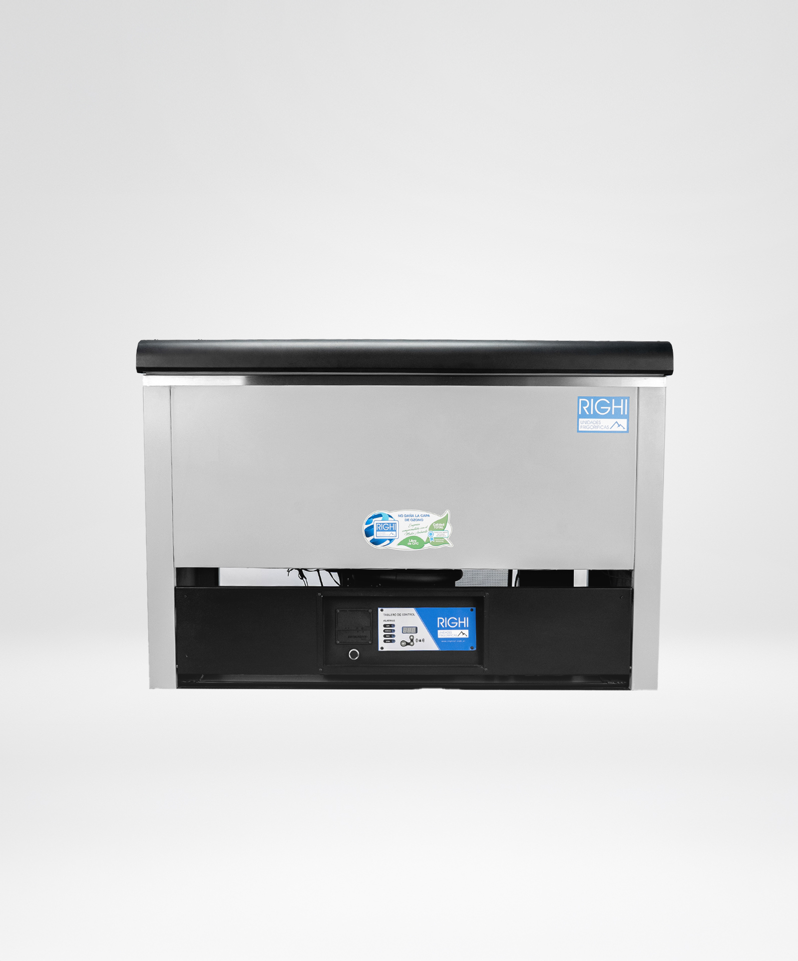 Alarmas visuales de led y sonoras alimentadas con batería por falta de tensión y/o alta o baja temperatura con silenciador. Instrumentación de protección frigorífica. Motocompresor hermético (con sistema de blindado)