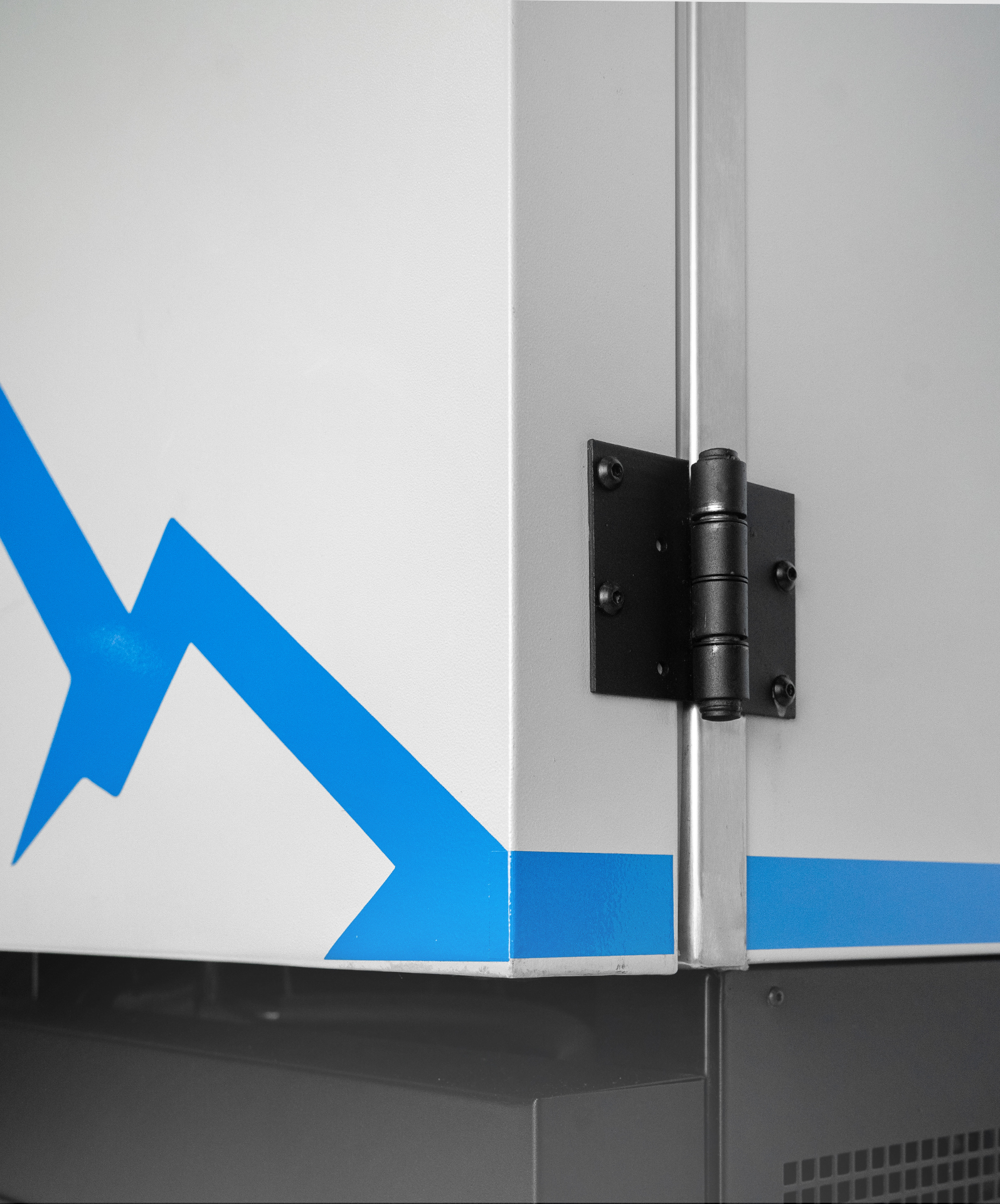 Alarmas visuales de led y sonoras alimentadas con batería por falta de tensión y/o alta o baja temperatura con silenciador. Instrumentación de protección frigorífica. Motocompresor hermético (con sistema de blindado)