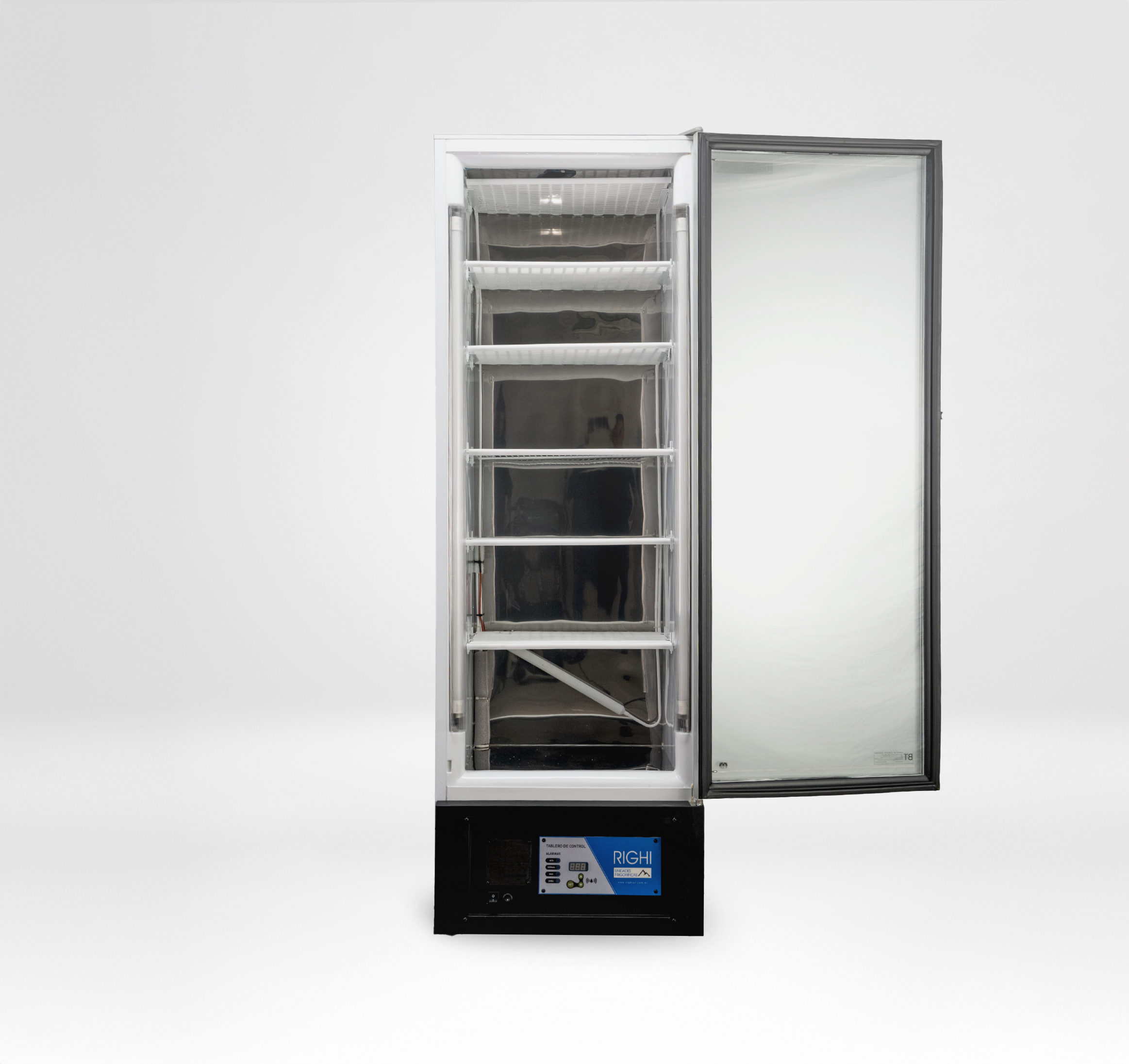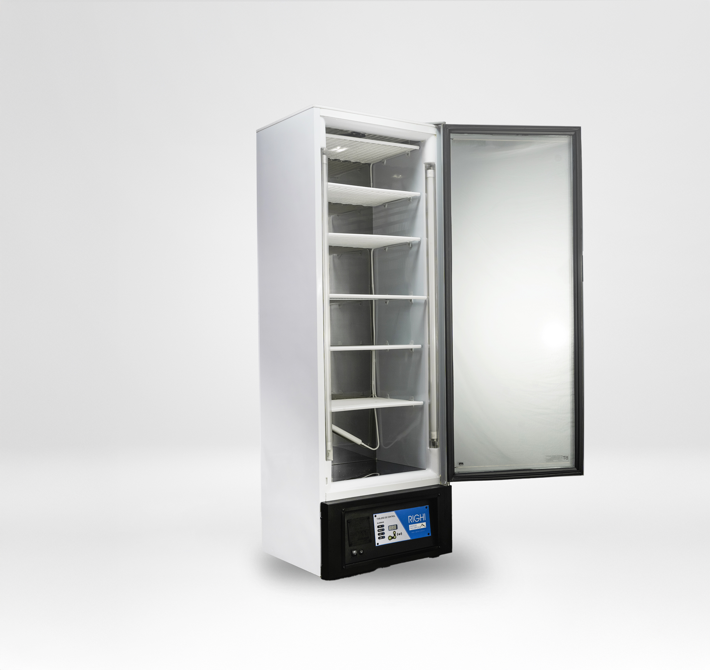 Alarmas visuales de led y sonoras alimentadas con batería por falta de tensión y/o alta o baja temperatura con silenciador. Instrumentación de protección frigorífica. Motocompresor hermético (con sistema de blindado)