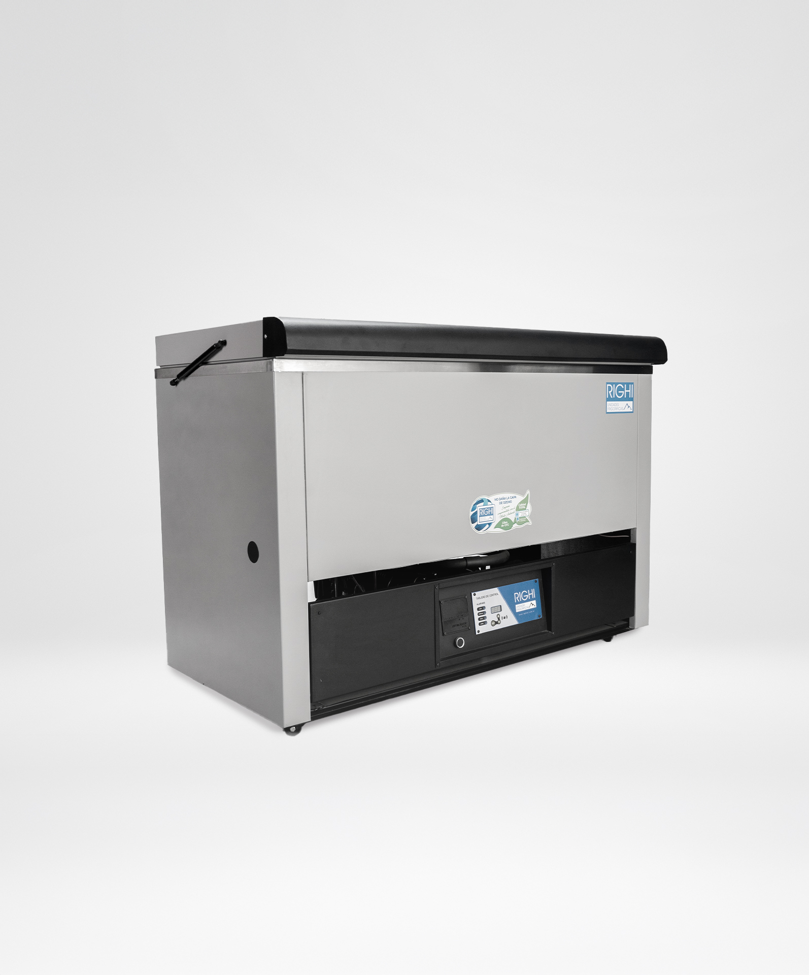 Alarmas visuales de led y sonoras alimentadas con batería por falta de tensión y/o alta o baja temperatura con silenciador. Instrumentación de protección frigorífica. Motocompresor hermético (con sistema de blindado)